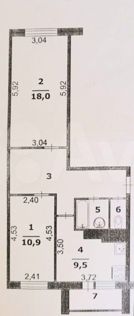 | Площадь (кв.м.) | Общая: 53 Жилая: 30 Кухня: 9.1 Комнаты: 18.11 53 / 30 / 9.1 |